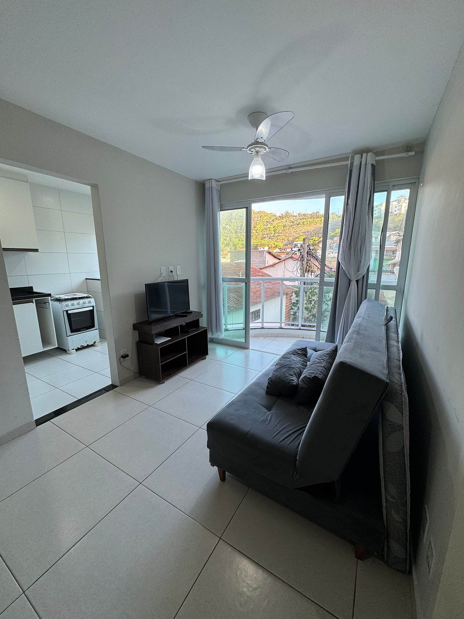 O apartamento conta com os seguintes espaços: - Sala com bicama, TV smart; - Quarto com cama queen size; - Banheiro; - Cozinha com fogão, geladeira, microondas, sanduicheira, louças e talheres diversos. - Uma vaga de garagem privativa; Disponibilizamos roupas de cama e toalhas! Wi-Fi disponível Falamos inglês e espanhol. Apenas 650 metros da Praia Grande (8 min a pé)